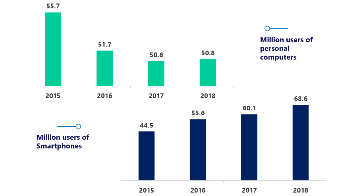 • Mexican consumer’s tendency since 2015 has been to ditch personal computers in favor of smartphones