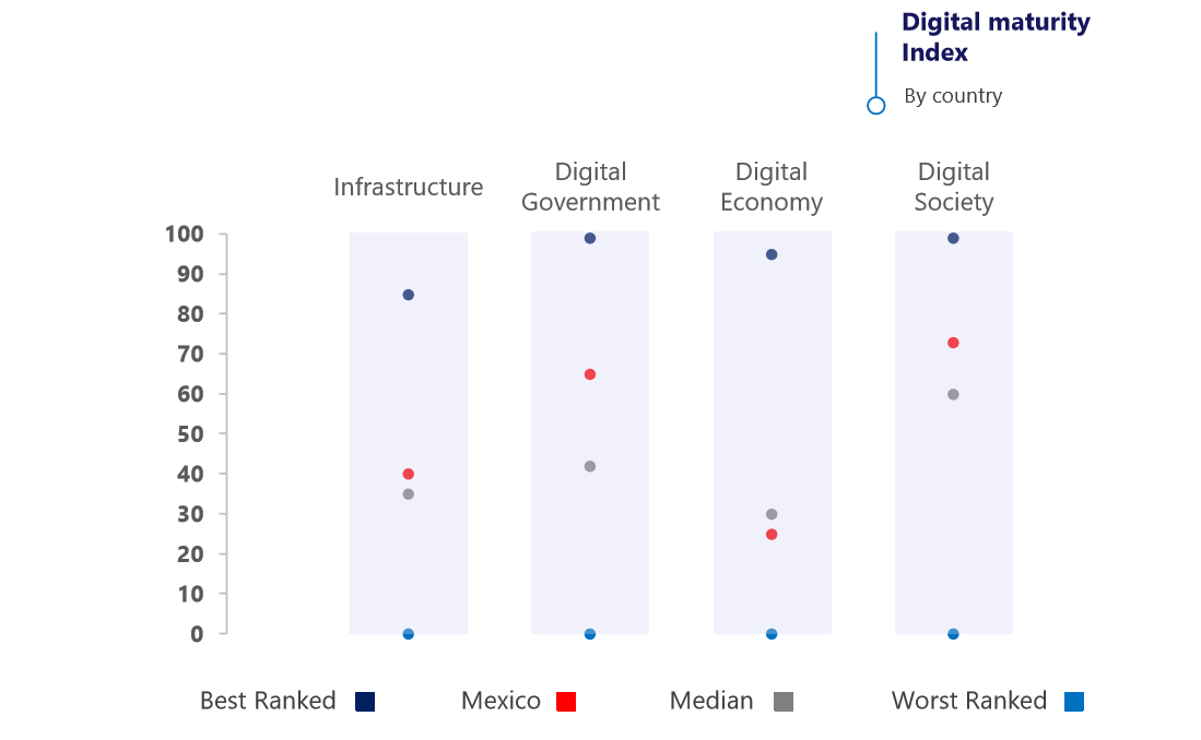 • It is estimated that if Mexico reaches a higher Digital maturity index, its GDP growth could hit 7.0-15.0% by 2025*