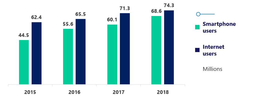• According to INEGI, only 74.0 million of Mexicans had access to the Internet in 2018
