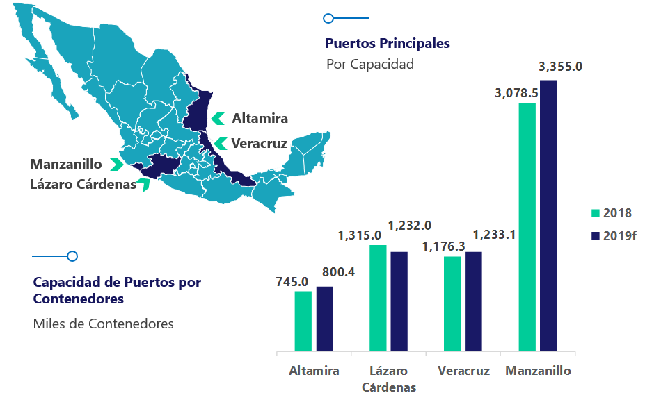 El Puerto de Veracruz se someterá a una inversión de US$1.5 billones, que esperan incrementar su capacidad de 22.0 millones de toneladas al año a 90.0 millones. Se espera que rebase la capacidad del Puerto de Manzanillo y que reporte un crecimiento anual promedio de 3.6% entre 2019 y 2023